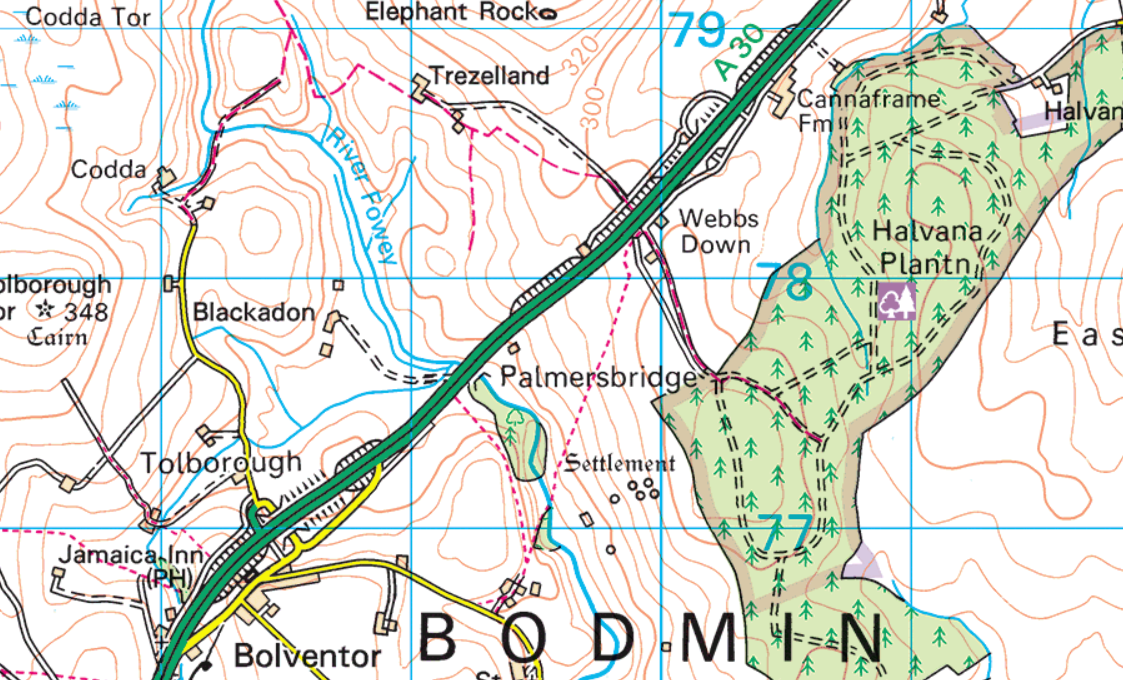 A newly-mapped area of Bodmin Moor near the source of the River Fowey.