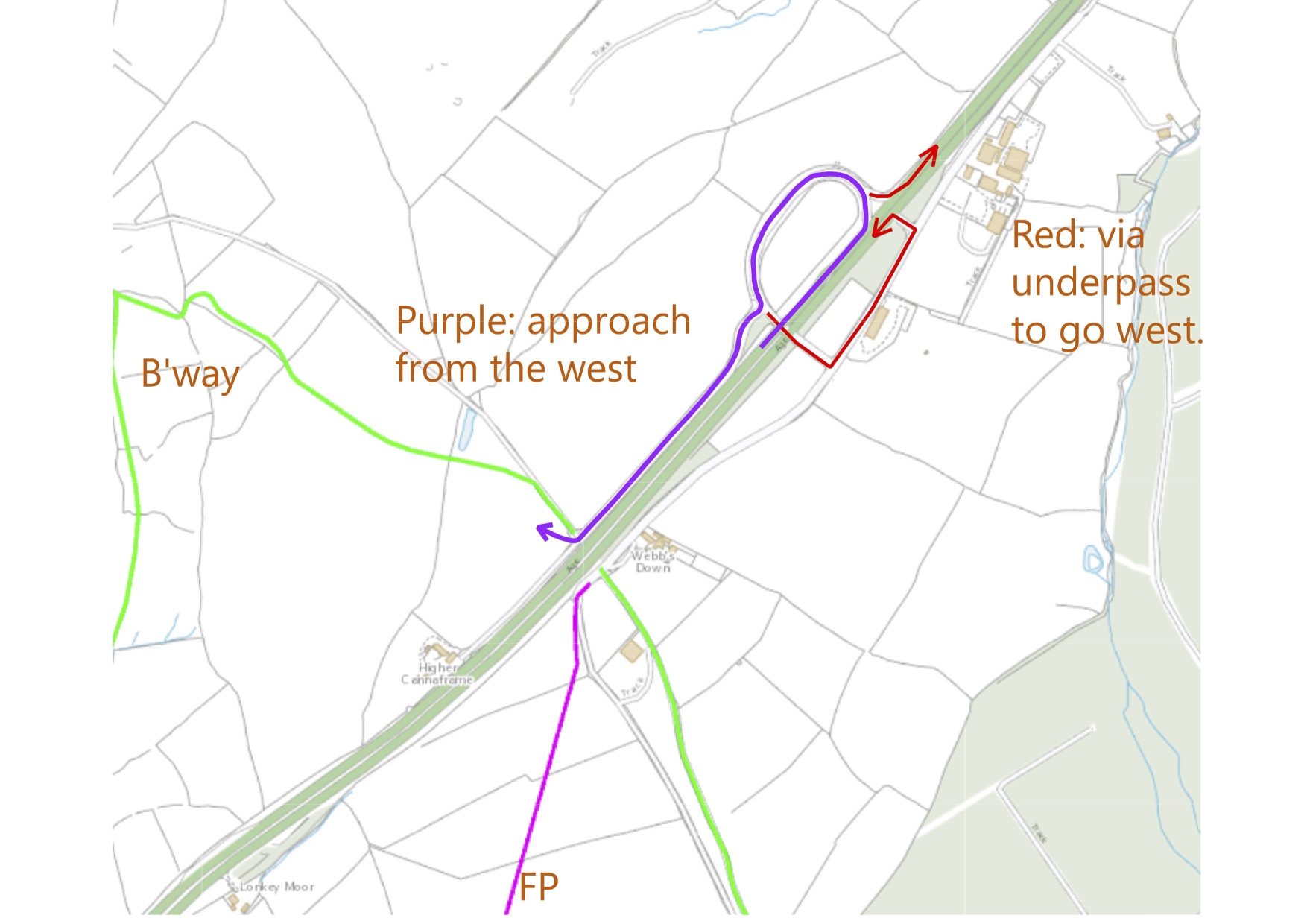 * A number of courses will use an underpass, under the A386. To emphasize the need to use the underpass, the road above is shown as an uncrossable boundary.
